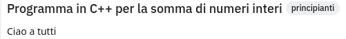 Se sei un principiante e vuoi pubblicare le tue domande: entra nel nostro subreddit in Italiano dedicato al C++, scrivi un messaggio di testo e taggalo con flair “principanti”:
